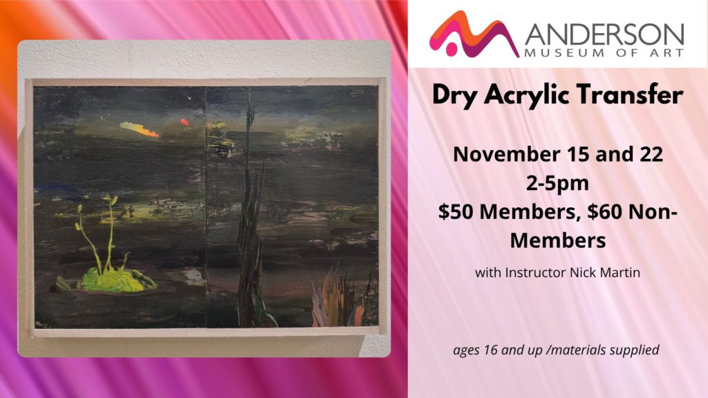 Full refunds will be given if AMOA cancels the class. Half refunds will be given before Sign Up Deadline which is typically one week before the class begins. No refunds will be given after the Sign Up Deadline.